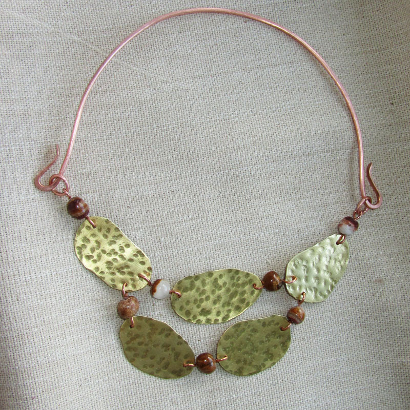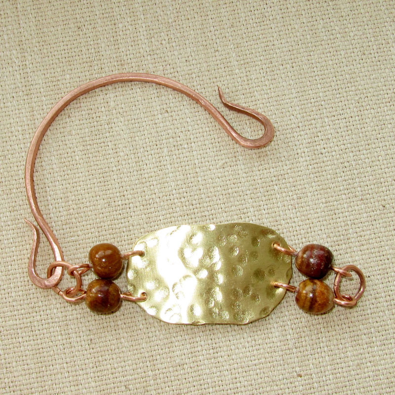 Текстурированная латунь, медь, бусины оникса.