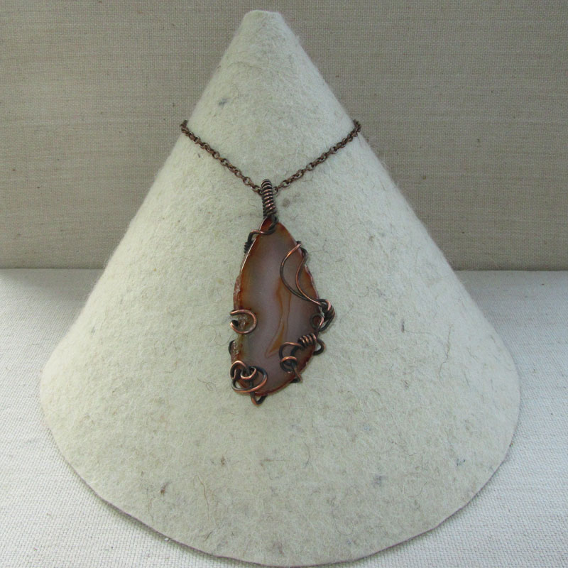 Двусторонний кулон из меди и спила полупрозрачного агата.
